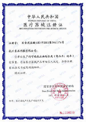 近日,我公司產(chǎn)品可吸收止血結(jié)扎夾(商品名:速豐)正式獲得國家食品藥品監(jiān)督管理局頒發(fā)的第三類醫(yī)療器械產(chǎn)品注冊證書,注冊證號(hào):國食藥監(jiān)械(準(zhǔn))字2011第3461576號(hào)。(參見國家藥監(jiān)局網(wǎng)站http://www.sda.gov.cn/WS01/CL0403/68257.html